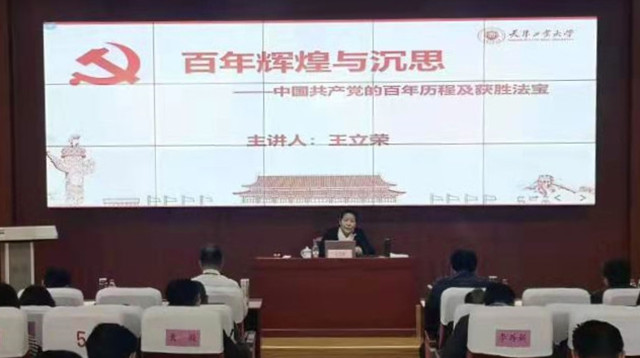 培训班紧紧围绕中央关于党史学习教育的6方面学习内容,邀请市委党校、南开大学、天津工业大学专家分别作了《中国共产党的光辉历史》《学习党史的深度思考》《十九届五中全会解读》以及国内国际形势专题讲座等,组织全体学员观看了影片《建党伟业》,分组交流了学习感悟,并进行党史知识测验。