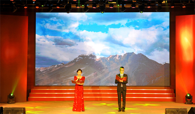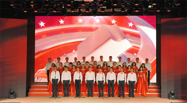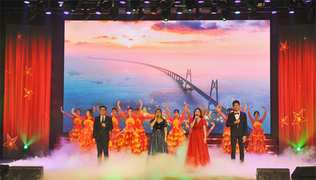 集团公司领导班子成员带领总部干部齐声高唱《没有共产党就没有新中国》拉开了文艺汇演的序幕。