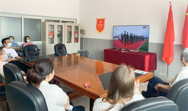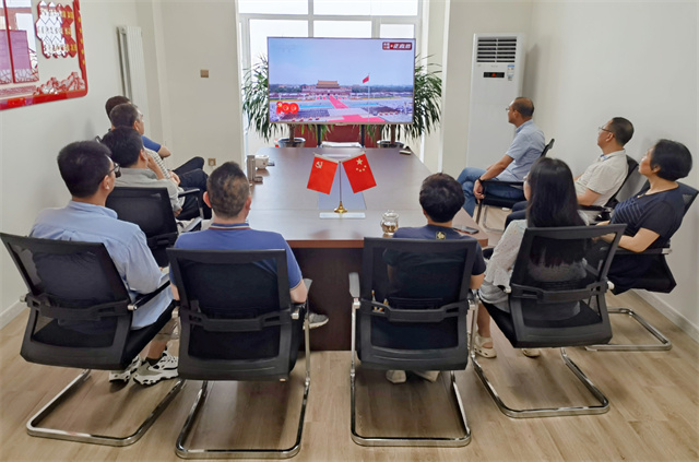 在渤轻集团总部,集团公司领导班子成员和总部干部一同观看了庆祝大会。观看过程中,大家精神振奋、热情澎湃,一边认真聆听总书记重要讲话,一边做好学习笔记,精彩之处,情不自禁随直播现场鼓起掌来。