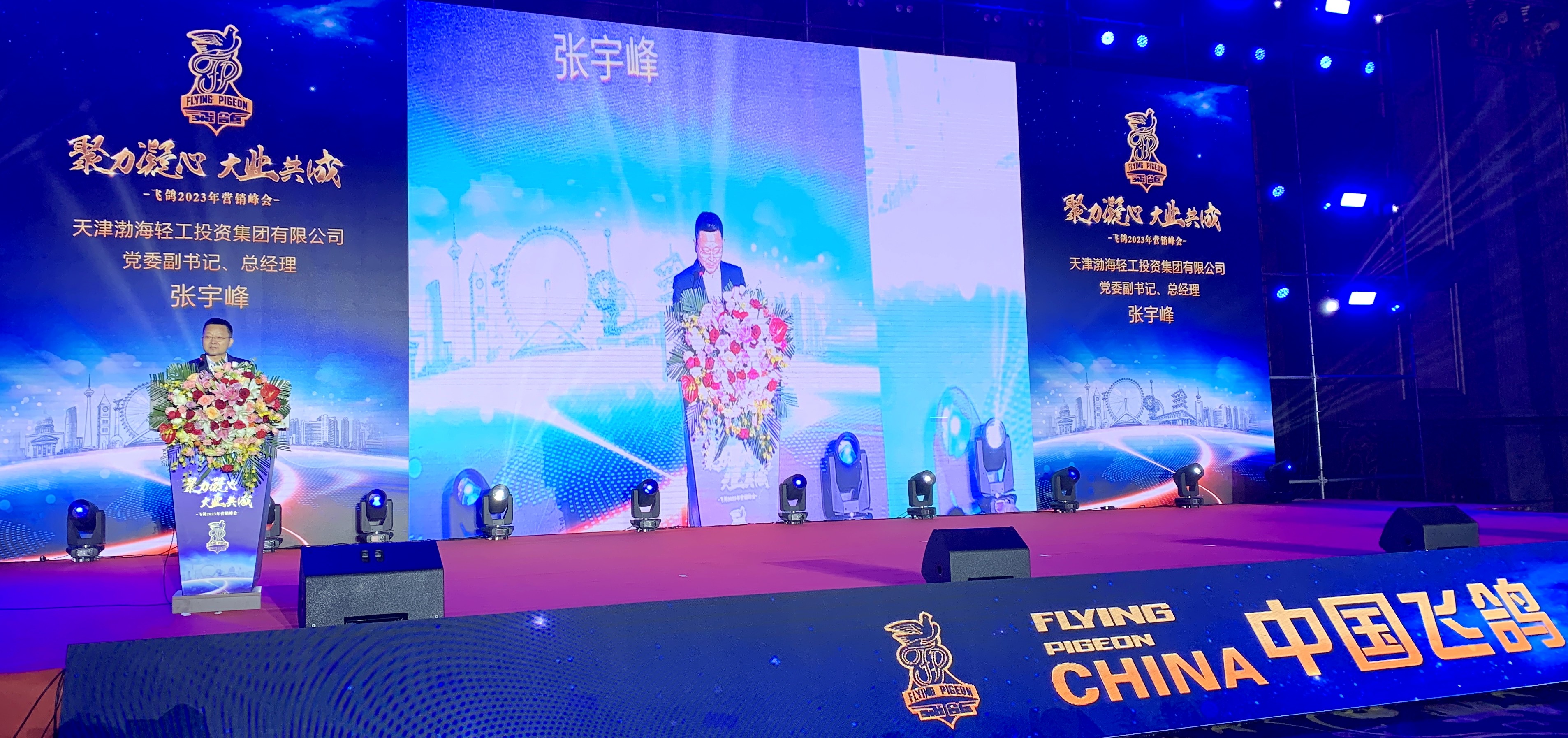 10月12日,天津飞鸽车业有限公司举行揭牌成立仪式暨飞鸽2023年营销峰会。集团公司总经理张宇峰出席并为新公司成立揭牌,来自全国28个省市的经销商、运营商、工厂商代表共计300余人出席活动。
